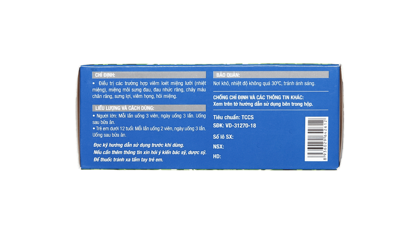 - Ðiều trị các trường hợp viêm loét miệng lưỡi (nhiệt miệng), miệng môi sưng đau, đau nhức răng, chảy máu chân răng, sưng lợi, viêm họng, hôi miệng.